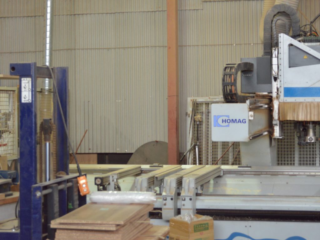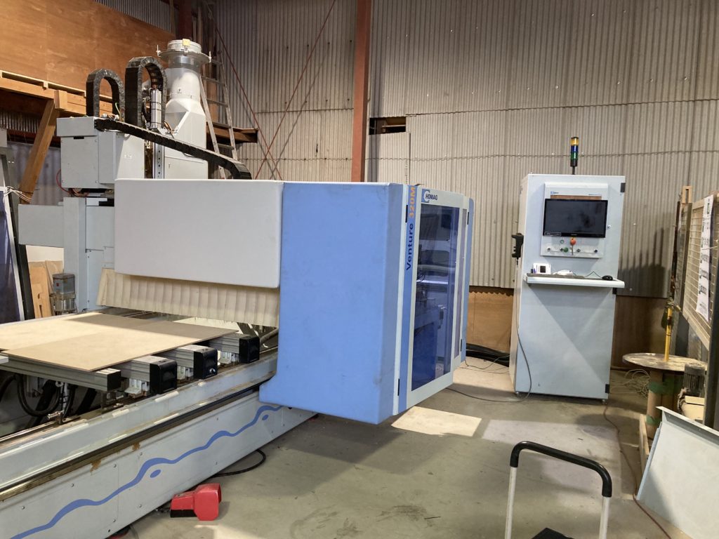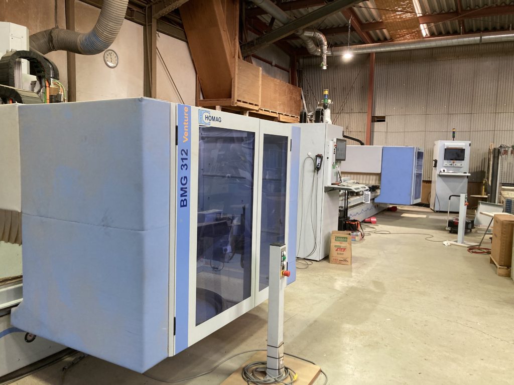 当社では、安定した品質と高精度な加工を実現するため、各種木工機械を積極的に導入しています。なかでもCNCマシニングセンターをはじめとした最新のNC加工設備は、複雑な形状や細やかな寸法指定にも柔軟に対応できる体制を整えています。また、大型パネルソーによる精密なカット、プレス機による合板・集成材の圧着、サンダーによる研磨、塗装ブースでの仕上げ加工など、各工程に専用設備を配置し、一貫した生産体制を確立しています。
